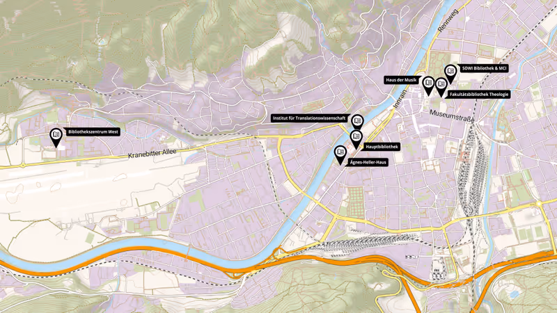 An mehreren kleinen und großen Bibliotheksstandorten in Innsbruck stehen Lernplätze zur Verfügung.