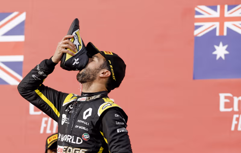 Publikumsliebling Daniel Ricciardo feierte auf seine eigene Art: mit einem „Shoey“.