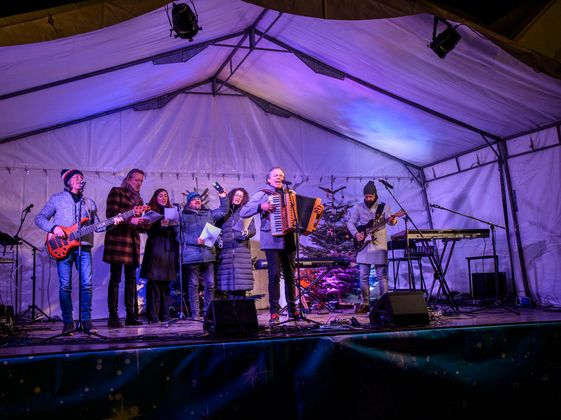 Telfs – In stimmungsvoller Umgebung – auf dem Birkenberg oberhalb von Telfs – fand am Samstag eine Veranstaltung des „Tiroler Sternenhimmels“ statt. Mit dabei ein prominent besetztes Bläserensemble u.a. mit Tobias Moretti, Günther Platter, Lutz Moretti, Hermann Petz und Karlheinz Töchterle (v.l.n.r.).