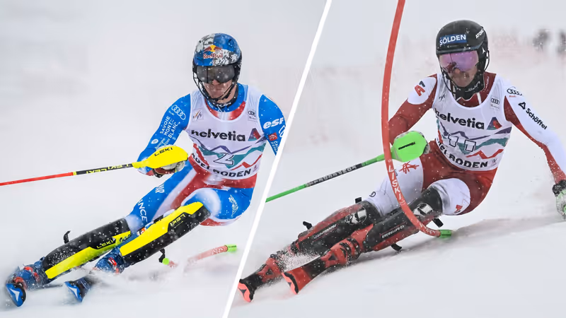 Clement Noel (l.) fuhr zu seinem dritten Saisonsieg, Fabio Gstrein zeigte als Fünfter auf.