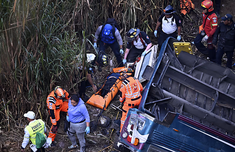 Viele der Verletzten schweben noch in Lebensgefahr. Der Reisebus mit mehr als 70 Insassen war am Montag am nördlichen Stadtrand der Hauptstadt Guatemala-Stadt von einer Brücke in eine Schlucht gestürzt und in einem von Abwasser verunreinigten Fluss gelandet. Das Unglück ist eines der schlimmsten in dem zentralamerikanischen Land seit Jahren.