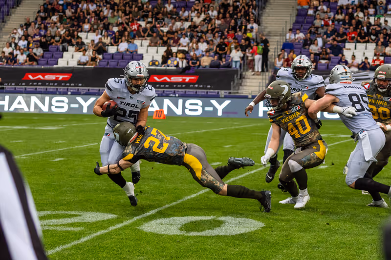 Es sieht gut aus, dass Raiders Runningback Tobias Bonatti (l.) wieder auf die Vienna Vikings trifft.
