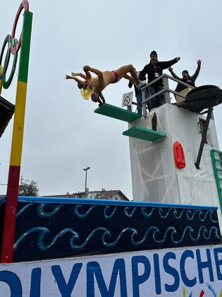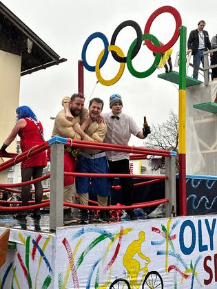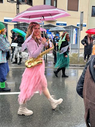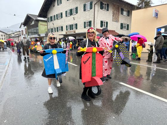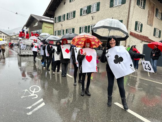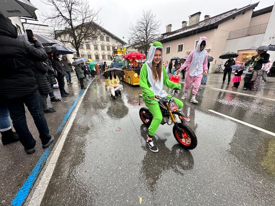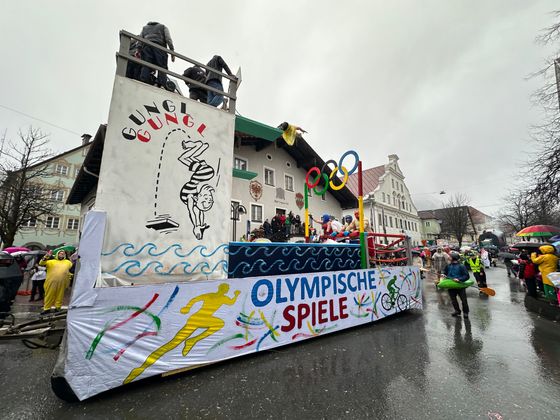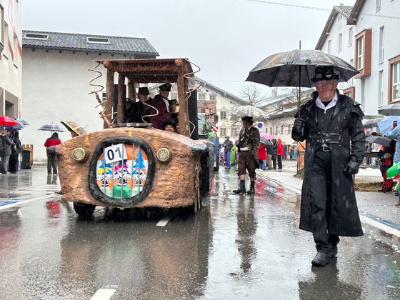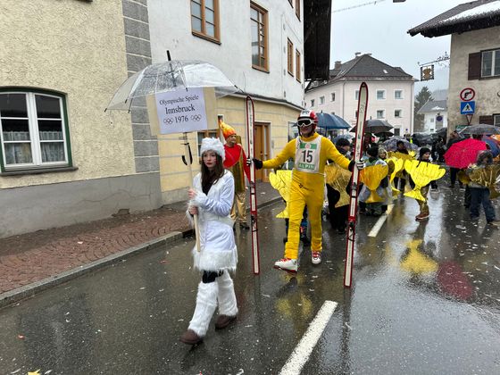 Pünktlich um 14 Uhr setzte sich der Unsinnigen-Umzug in Reutte in Bewegung – und der Himmel öffnete seine Schleusen. Obwohl der Regen angekündigt war und auch kein Ende nehmen wollte, trotzten Tausende Zuschauer und Hunderte Teilnehmer den Umständen. Einzig farbenprächtige Fußgruppen waren wegen der Niederschläge etwas weniger als in den Jahren zuvor auszumachen, ansonsten kamen alle auf ihre Rechnung. Im größten Applaus konnte sich dieses Jahr wohl die Faschingsabordnung der Höfener, Gungler genannt, „sonnen“. Ihr riesiger Olympia Dome, im dem Dauerboxkämpfe und wagemutige Turmsprünge zu sehen waren, gefiel den Schaulustigen am Besten.