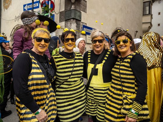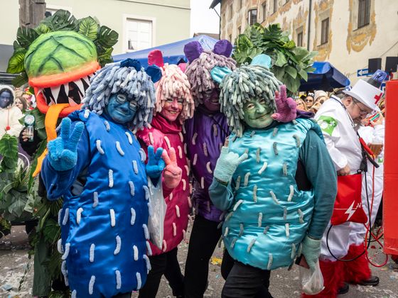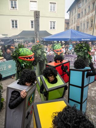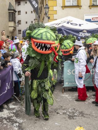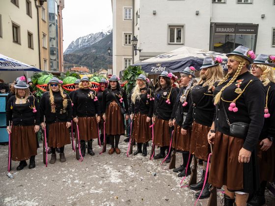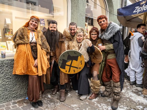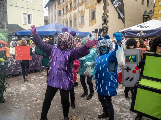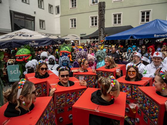 Gute Laune und bunte Kostüme, so weit das Auge reicht. Das ist Schwaz am Unsinnigen Donnerstag. Tausende Kostümierte drängten sich in die Schwazer Altstadt und feierten den wichtigen Faschingstag im Unterland als gäbe es kein Morgen. Als Siegerinnen der Maskenprämierung gingen die giftgrünen „Venusfallen“ in ihren herausragenden Kostümen hervor, aber auch Haribo-Fruchtgummis, eine Kaugummiautomaten-Schar und ein Ritter in glänzender Rüstung sorgten für Aufsehen.