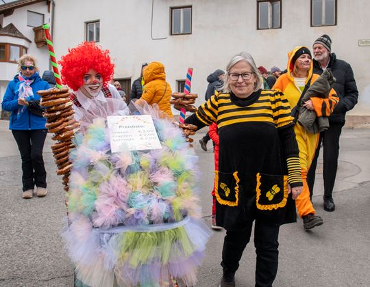Die Figler entführten mit ihrer Kampfkunst-Show nach Asien und das Faschingskomitee Vomp, das einen Gastauftritt hatte, in den Orient. Zudem wurde die Straße vor der Volksschule mit zahlreichen Standln zur Bühne aller anderen Kostümierten. Kinder konnten mit dem Tengl-Tengl-Express eine Runde durch den Ort fahren.