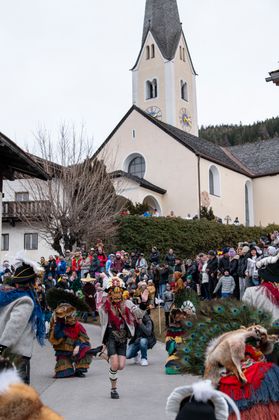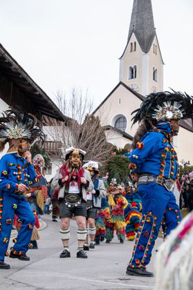 Am Unsinnigen Donnerstag erreicht auch in Patsch die Fasnacht ihren Höhepunkt: die Patscher Schellenschlagerinnen und die Brauchtumsgruppen machen den Winter den Kehraus.