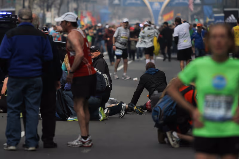 Auf Fernsehbildern war zu sehen, wie die Läufer im Zielbereich zu Boden gingen, während eine meterhohe Rauchwolke aufstieg. Menschen liefen davon, Polizei und Rettungskräfte eilten Verletzten zu Hilfe.