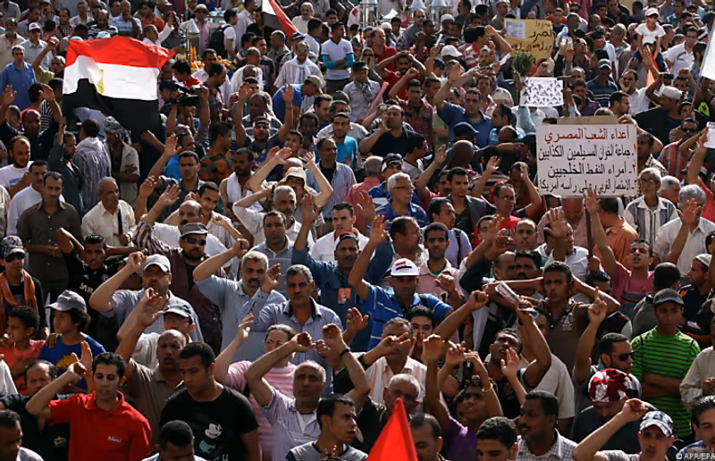 Aufgerufen zu der Demonstration gegen Mursi und die islamistische Muslimbruderschaft hatten die oppositionelle Al-Dastur-Partei und die Bewegung 6. April. Diese hatte eine führende Rolle bei den Protesten gespielt, die im Februar 2011 zum Sturz des langjährigen Machthabers Mubarak führten. (APA/Reuters/AFP/dpa)
