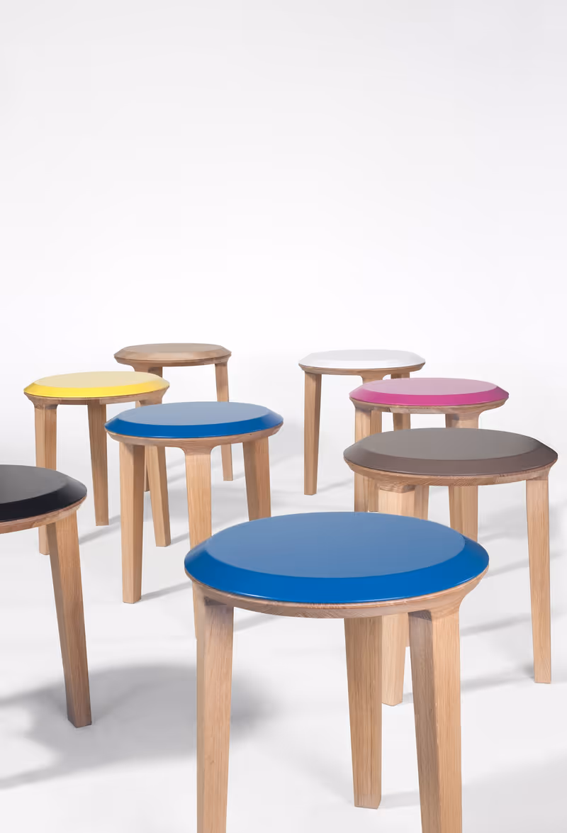 Immer gut für ebenso originelle wie funktionale Möbelstücke ist der Wiener Designer Thomas Feichtner. Bei der Wiener Messe stellt er seine Kollektion „Fino“ vor, die zwar aus Massivholz getischlert ist, durch ihre fast spielerisch anmutende Kombination mit anderen Materialien trotzdem wunderbar leicht daherkommt. Raffiniert ist auch der Materialmix beim „bullfrog Stuhl C23“ aus der Cottage Collection von Möbelwerk: Seine Sitzflächen sind mit dickem, braunem Büffelleder bezogen, das Gerüst ist rechtwinkelig aus purem geflammtem Stahl geschmiedet. Aber auch Stehpulte scheinen wieder in Mode zu kommen. Einen zu Max Bills legendärem „Ulmer Hocker“ von 1954 passenden hat das Wiener Designerduo breadedescalope jedenfalls kreiert.