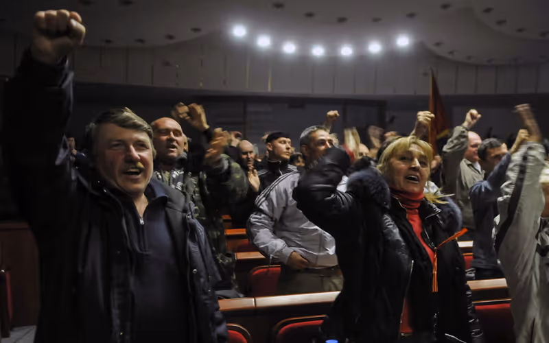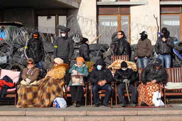 Um das Verwaltungsgebäude harrten rund 2000 prorussische Demonstranten aus, die teilweise bewaffnet waren.
