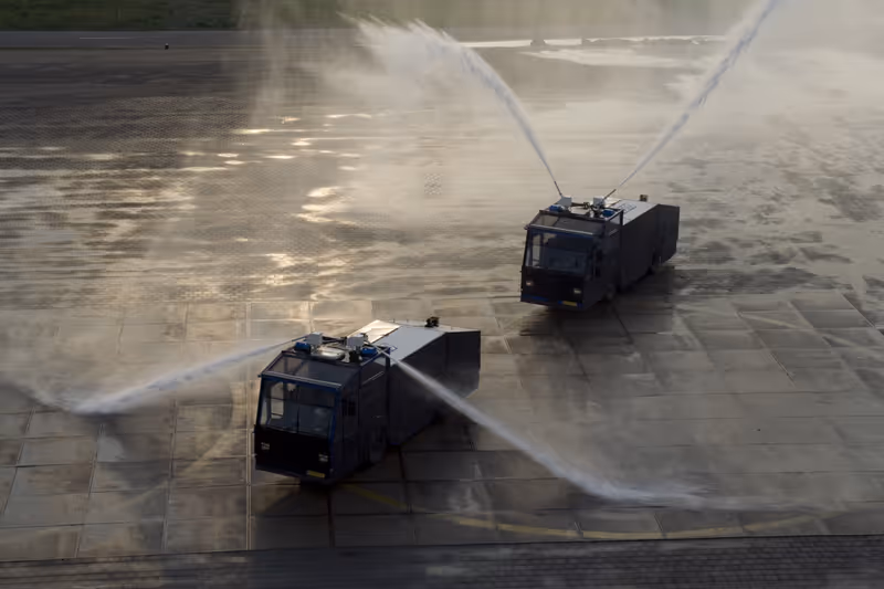 Spaniens Krise und ihr Widerhall in der Kunst: Während die Banken auf dem Vulkan tanzen, tanzen Wasserwerfer Walzer. Derzeit in der Neuen Galerie.