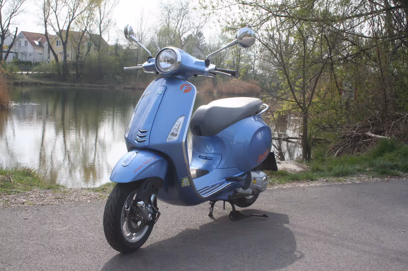 Noch erstaunlicher als der Motor gibt sich das Fahr- werk. Dank einem etwas längeren Radstand als bei der LX ist der Geradeauslauf trotz der mit elf Zoll Durchmesser recht kleinen Räder tadellos. Problemlos kann man mit 50 km/h und mehr über Schwellen holpern, die komplett neu konstruierte Vorderrad-Schwinge schluckt gröbere Unebenheiten, ohne dass die Primavera aus der Ruhe gerät. Dazu kommen noch wirkungsvolle Bremsen sowohl vorne wie hinten. Auch hier hat man sich bei Vespa in den letzten Jahren sehr gebessert. Weniger gebessert hat man sich beim Preis, laut Liste müssen 4650 Euro berappt werden, derzeit läuft eine Sonderaktion um 4299 Euro. Tröstlich ist daher die Tatsache, dass auch der Wiederverkaufswert recht hoch liegt.