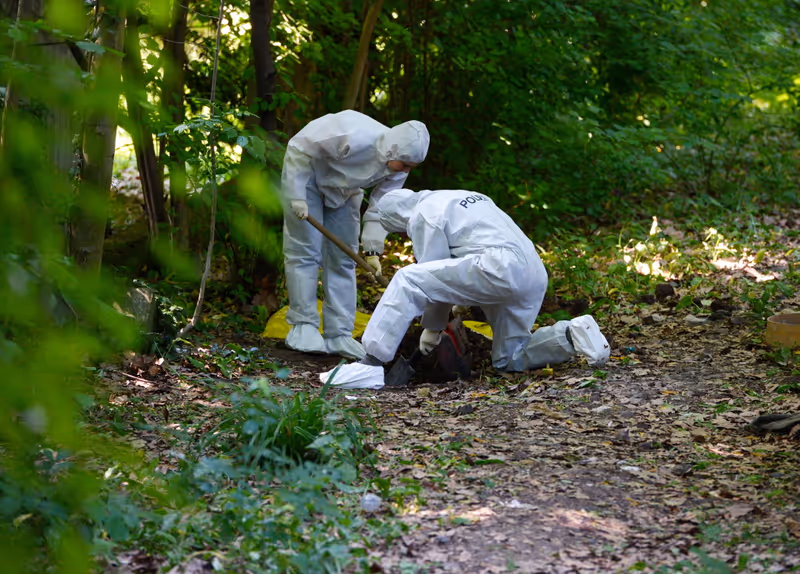 Die Hintergründe der Tat waren demnach zunächst völlig unklar, die Ermittler richteten eine 40-köpfige Sonderkommission ein. Den Angaben zufolge hatten die beiden Zeugen am frühen Sonntagabend einen Grillplatz zum Austreten verlassen. Dabei fielen ihnen hinter einer Betonmauer am Bahndamm die beiden Reisekoffer auf. Da sie an den Koffern Blutspuren bemerkten, alarmierten die Zeugen den Angaben zufolge umgehend die Polizei.