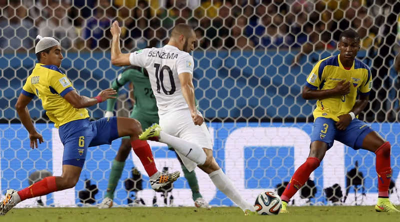 So gab es vorerst nur Halbchancen, die Antoine Griezmann (11.) und Sissoko (15.) vorfanden. Zudem flog Ecuador-Goalie Alexander Dominguez an einer Sagna-Flanke vorbei, Benzema kam aber knapp nicht zum Kopfball (27.). Nur einmal wurde es wirklich gefährlich: Dominguez drehte einen Pogba-Kopfball über die Latte (38.). Auf der anderen Seite deutete nur Enner Valencia mit einem Kopfball aus spitzem Winkel, den Lloris parierte (41.), seine Gefährlichkeit an. Es sollte die einzige nennenswerte Chance des dreifachen Turnier-Torschützen bleiben.
