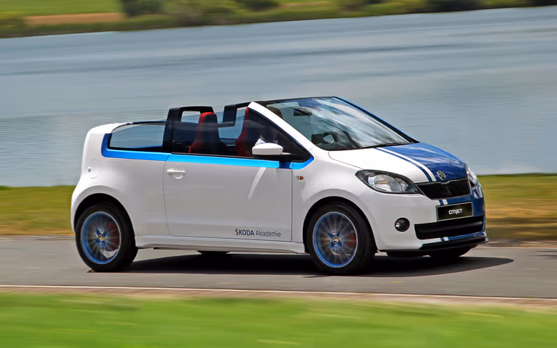 Beim GTI-Treffen am Wörthersee treffen sich die eingefleischten Gasgeber. Mitten unter ihren brummenden Geräten stand ein blau-weiß lackierter, schicker, kleiner Roadster mit dem Skoda-Logo, das Unikat CitiJet.
