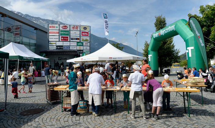 Während sich die kleinen Besucher bei der Kinderbackstation vom Bäcker Ruetz als Nachwuchsbäcker beweisen konnten oder sich mit Spiel und Spaß die Zeit in Tonis Kinderecke vertreiben konnten, lud TT-Chefredakteur Alois Vahrner prominente Gäste aus den Bereichen Politik, Wirtschaft, Sport und Kultur auf die Bühne zum Gespräch.