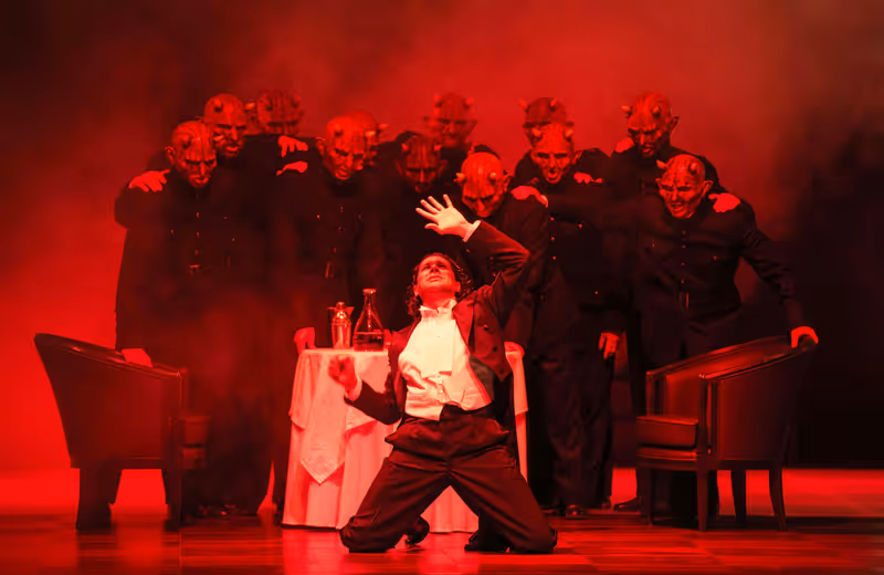 Bechtolf inszenierte weder modern noch traditionell. Und psychologisch schon gar nicht. Er versuchte, diesen großen Mythos der europäischen Kultur, diesen getriebenen Jäger, Sammler, diesen gehetzten, kalten und gierigen Typ Mann zu zeigen, wie er ist und wie er wirkt. Das hat prickelnde Momente. Viele Details, viele Regieeinfälle stiften Sinn. Auch die Personenregie wirkte plausibel, da wurde wirklich gespielt, da war Bewegung auf der Bühne. Aber ein großer, eindeutiger Bogen, der dreieinhalb Stunden lang spannend geblieben wäre, war nicht zu spüren. Je länger der Abend im Haus für Mozart dauerte, desto mehr erlahmten das Drama und seine Helden, desto leerer wirkten Auf- und Abtritte, desto dürftiger die Strahlkraft der Figuren. Fast wie eine inszenierte Verzweiflungstat erschienen da die Menschen mit ihren schaurig roten Teufelsmasken. Oder auch „Don Giovanni“ selbst, der mit der Fratze des Bösen den Kellner spielt und den Getäuschten und Betrogenen ganz sicher keinen reinen Wein einschenkt.