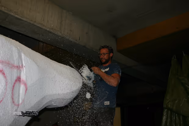 Seefeld –Wo gehobelt wird, da fallen Späne. Oder Schneeflocken. Der schwarze Boden einer Seefelder Garage ist bedeckt mit weißen Kügelchen. Martin Albrecht, der ein bisschen an einen Schneemann in kurzen Hosen erinnert, bearbeitet unter ohrenbetäubendem Lärm einen riesigen weißen Styropor-Klotz mit der Motorsäge. Der Leutascher Künstler ist der kreative Kopf des heurigen Blumencorso in Seefeld. Er kreiert die Figuren, die kurz vor dem farbenprächtigen Umzug mit Blumen bestückt werden. Seit drei Wochen steht er Tag für Tag in der Garage, zwölf Figuren hat er bereits geschaffen. Die Ideen für die Gestalten stammen teilweise von den Teilnehmern selbst, teilweise von Albrecht. „Manche bringen Zeichnungen, einige haben eine vage Vorstellung“, erklärt der 34-jährige Kunstschmied. Beim Bearbeiten der Styropor-Blöcke gehe er nicht wirklich schematisch vor, das Schnitzen gehe ihm frei von der Hand.